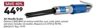 The Air Needle Scaler is available this week at Princess Auto with a valuable discount. On this page, you will find details about the current promotional price, the promotion terms, and any special discounts. You can also explore other related deals and promotions for Air Needle Scaler to make sure you get the best value.