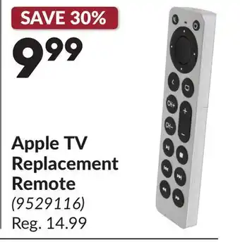 This Apple TV Replacement Remote is now on sale at Princess Auto. Check the current selection filled with great deals and discounts. Purchase Apple TV Replacement Remote online via Princess Auto website or get it at the best available price in person. Flyerdeals.ca gathers the best Apple TV Replacement Remote promotions for you. Click on the bell icon to receive a free notification when this product is on sale again.Apple TV Replacement Remote promotions for next week