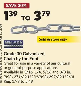 Now on sale at Princess Auto: Grade 30 Galvanized Chain by the Foot ✅ Valid from 30-12 to 11-01.
