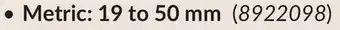 Metric: 19 to 50 mm