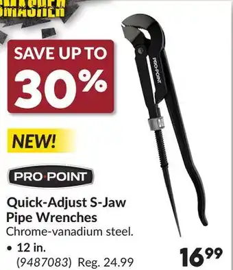 The Quick-Adjust S-Jaw Pipe Wrenches is available this week at Princess Auto with a valuable discount. On this page, you will find details about the current promotional price, the promotion terms, and any special discounts. You can also explore other related deals and promotions for Quick-Adjust S-Jaw Pipe Wrenches to make sure you get the best value.