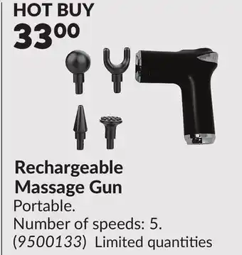 The Rechargeable Massage Gun is available this week at Princess Auto with a valuable discount. On this page, you will find details about the current promotional price, the promotion terms, and any special discounts. You can also explore other related deals and promotions for Rechargeable Massage Gun to make sure you get the best value.