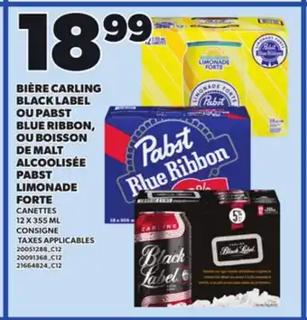 BIÈRE CARLING BLACK LABEL OU PABST BLUE RIBBON, OU BOISSON DE MALT ALCOOLISÉE PABST LIMONADE FORTE offers and online promotions