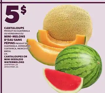 CANTALOUPES PRODUIT DU GUATEMALA OU HONDURAS OR MINI SEEDLESS WATERMELONS discount at Provigo