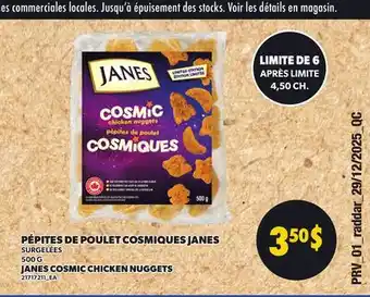 Now on sale at Provigo: JANES COSMIC CHICKEN NUGGETS, 500 G ✅ Valid from 1-01 to 31-01.