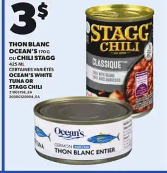 Now on sale at Provigo: OCEAN'S WHITE TUNA, 170 G OR STAGG CHILI, 425 ML ✅ Valid from 5-02 to 11-02.
