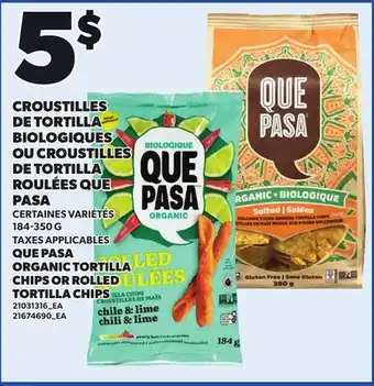 QUE PASA ORGANIC TORTILLA CHIPS OR ROLLED TORTILLA CHIPS offer at Provigo