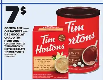 TIM HORTON'S HOT, 500 G CHOCOLATE TIN OR SACHETS, 8 UN offer at Provigo