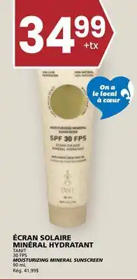 The price of TANIT 30 FPS MOISTURIZING MINERAL SUNSCREEN can be found at the top of the page, together with the dates during which the offer is available. You can also check the price in the current Rachelle-Bery Grocery flyer or on the Rachelle-Bery Grocery website. Promotional offers assure you of buying Rachelle-Bery Grocery products at the lowest price.