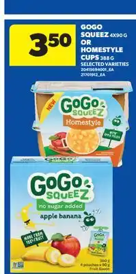 GOGO SQUEEZ, 4X90 G OR HOMESTYLE CUPS, 388 G promotion at Real Canadian Superstore