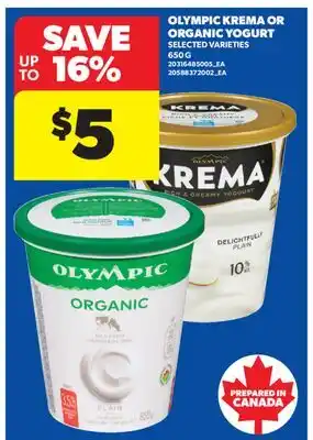OLYMPIC KREMA OR ORGANIC YOGURT, 650 G offer at Real Canadian Superstore
