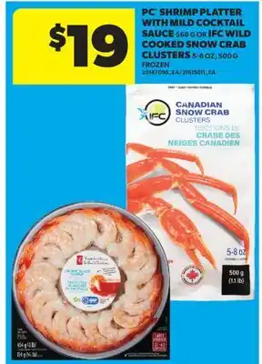 PC SHRIMP PLATTER WITH MILD COCKTAIL SAUCE 568 G OR IFC WILD COOKED SNOW CRAB CLUSTERS 5-8 OZ, 500 G promotion at Real Canadian Superstore