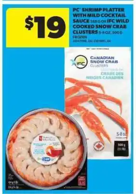PC Shrimp Platter with Mild Cocktail Sauce or IFC Wild Cooked Snow Crab Clusters discount at Real Canadian Superstore