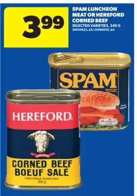 SPAM LUNCHEON MEAT OR HEREFORD CORNED BEEF promotion at Real Canadian Superstore