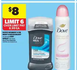 DOVE WOMEN'S OR MEN'S DEODORANT 74-85 G OR DRY SPRAY 107/113 G