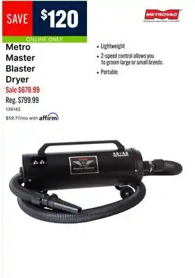 Metro Master Blaster Dryer offer at Ren’s Pets Depot