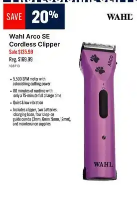 Wahl Arco SE Cordless Clipper promotion at Ren’s Pets Depot