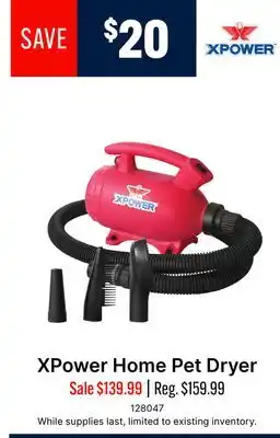 This promotion is available in various stores, view all products to get the cheapest XPower Home Pet Dryer. If you'd like to find out whether this product has a bigger discount in another store, check the category 'Garden and Animals'. You may also find these offers interesting: XPower Pro Finisher Stand Dryer, XPower Thermal Ace Force Dryer & Bounce Pet Hair & Lint Guard Dryer Sheet.