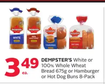 DEMPSTER'S White 570g or 100% Whole Wheat 675g Bread or Hamburger or Hot Dog Buns 12-Pack offer at Rexall