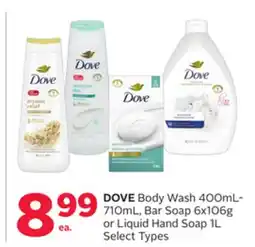 DOVE Body Wash 400mL-710mL, Bar Soap 6x106g or Liquid Hand Soap 1L