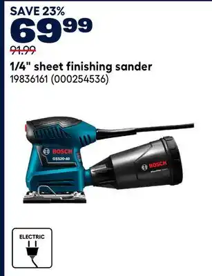 This 1/4 sheet finishing sander is now on sale at RONA. Check the current selection filled with great deals and discounts. Purchase 1/4 sheet finishing sander online via RONA website or get it at the best available price in person. Flyerdeals.ca gathers the best 1/4 sheet finishing sander promotions for you. Click on the bell icon to receive a free notification when this product is on sale again.1/4 sheet finishing sander promotions for next week