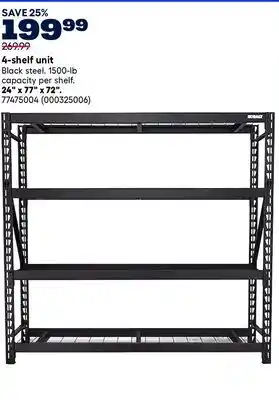 This 4-shelf unit is currently on sale at RONA. All details regarding the current price, offer conditions, and validity period can be found on this page. You can also explore other similar deals and promotions related to 4-shelf unit to make the most cost-effective choice.