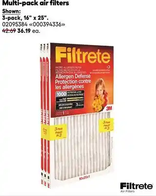 Many people prepare their shopping list in advance, using the latest deals and promotions. Flyerdeals.ca is among the first to share next week’s promotions, so you know whether to wait before making a purchase or buy right away at the best price. Our team updates all Multi-pack air filters promotions quickly, allowing you to plan with both this week’s and next week’s offers. Some promotions are only available during specific dates or online.Frequently asked questions about Multi-pack air filters