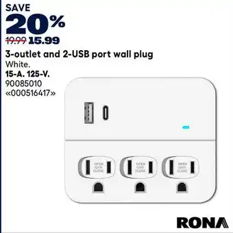RONA 3-outlet and 2-USB port wall plug discount at RONA
