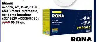 RONA 4-pack, 4, 11-W, 5 CCT, 850 lumens, dimmable, for damp locations offers and online promotions