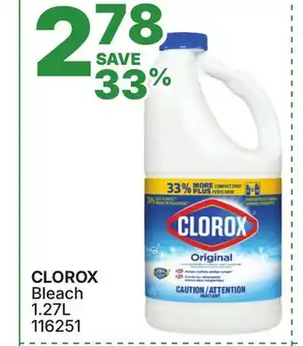 This promotion is available in various stores, view all products to get the cheapest CLOROX Bleach. If you'd like to find out whether this product has a bigger discount in another store, check the category 'Toys'. You may also find these offers interesting: Clorox bleach, PINE-SOL CLEANER OR CLOROX BLEACH & CLOROX BLEACH (1.27L), TILEX SHOWER (946mL) or PINE-SOL MULTI-PURPOSE (828mL) CLEANER.