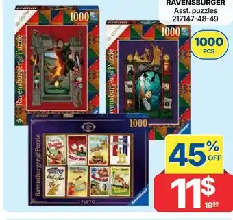 The RAVENSBURGER Asst. puzzles is available this week at Rossy with a valuable discount. On this page, you will find details about the current promotional price, the promotion terms, and any special discounts. You can also explore other related deals and promotions for RAVENSBURGER Asst. puzzles to make sure you get the best value.