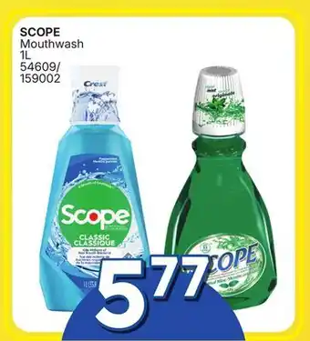 This promotion is available in various stores, view all products to get the cheapest SCOPE Mouthwash. If you'd like to find out whether this product has a bigger discount in another store, check the category 'Toys'. You may also find these offers interesting: SCOPE MOUTHWASH OR CREST TOOTHPASTE OR ORAL-B TOOTHBRUSH, Scope Mouthwash / Crest Toothpaste / Oral-B Toothbrush & CREST GUM RESTORE PASTE OR CREST SCOPE OUTLAST MOUTHWASH.
