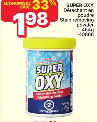 This SUPER OXY Stain removing powder is now on sale at Rossy. Check the current selection filled with great deals and discounts. Purchase SUPER OXY Stain removing powder online via Rossy website or get it at the best available price in person. Flyerdeals.ca gathers the best SUPER OXY Stain removing powder promotions for you. Click on the bell icon to receive a free notification when this product is on sale again.SUPER OXY Stain removing powder promotions for next week