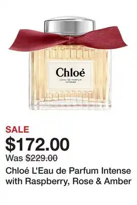 The Chloé L'Eau de Parfum Intense with Raspberry, Rose & Amber is currently available at a discount at Sephora. On this page, you will find all the details about the current price, the promotion terms, and the validity period. You can also explore comparable deals and promotions for Chloé L'Eau de Parfum Intense with Raspberry, Rose & Amber to make the most cost-effective choice.