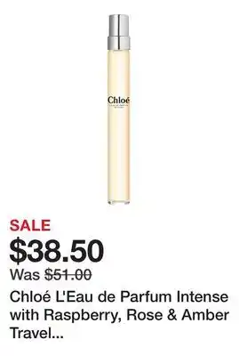 The Chloé L'Eau de Parfum Intense with Raspberry, Rose & Amber Travel Spray is currently available at a discount at Sephora. On this page, you will find all the details about the current price, the promotion terms, and the validity period. You can also explore comparable deals and promotions for Chloé L'Eau de Parfum Intense with Raspberry, Rose & Amber Travel Spray to make the most cost-effective choice.