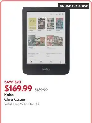 This promotion is available in various stores, view all products to get the cheapest Clara Colour. If you'd like to find out whether this product has a bigger discount in another store, check the category 'Grocery'. You may also find these offers interesting: Clara Colour eReader, Clara Colour & Clara Polyester Prints & Solids.