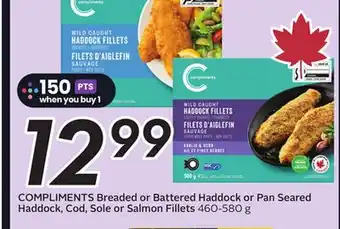 COMPLIMENTS Breaded or Battered Haddock or Pan Seared Haddock, Cod, Sole or Salmon Fillets promotion at Sobeys
