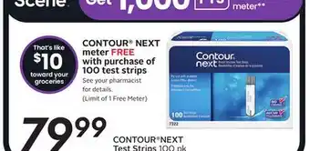 The price of CONTOUR NEXT Test Strips can be found at the top of the page, together with the dates during which the offer is available. You can also check the price in the current Sobeys flyer or on the Sobeys website. Promotional offers assure you of buying Sobeys products at the lowest price.