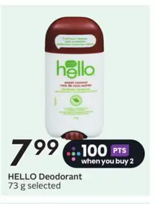 This HELLO Deodorant is now on sale at Sobeys. Check the current selection filled with great deals and discounts. Purchase HELLO Deodorant online via Sobeys website or get it at the best available price in person. Flyerdeals.ca gathers the best HELLO Deodorant promotions for you. Click on the bell icon to receive a free notification when this product is on sale again.HELLO Deodorant promotions for next week