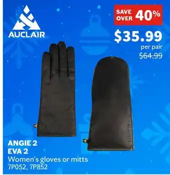 Sports Experts offers a wide collection of products, besides the AUCLAIR ANGIE 2 EVA 2. Keep an eye on the weekly flyer to find the best offers and promotions. Besides AUCLAIR ANGIE 2 EVA 2, you can also find the following offers: AUCLAIR SARAH 2 Women's mitts, évolur Eva changing pad & EVA Snow Brush & Ice Scraper, 61.