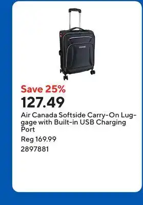 Now on sale at Staples: Air Canada Softside Carry-On Luggage with Built-in USB Charging Port ✅ Valid from 30-01 to 2-12.