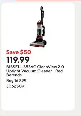 The BISSELL 3536C CleanView 2.0 Upright Vacuum Cleaner - Red Berends is available this week at Staples with a valuable discount. On this page, you will find details about the current promotional price, the promotion terms, and any special discounts. You can also explore other related deals and promotions for BISSELL 3536C CleanView 2.0 Upright Vacuum Cleaner - Red Berends to make sure you get the best value.