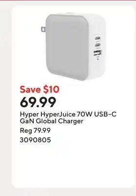 Hyper HyperJuice 70W USB-C GaN Global Charger offer at Staples
