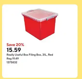Now on sale at Staples: Really Useful Box Filing Box, 31L, Red ✅ Valid from 2-01 to 8-01.