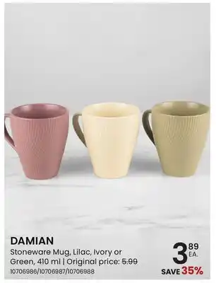 Current DAMIAN Stoneware Mug, Lilac, Ivory or Green deal at Stokes from 16-02 until 22-03.