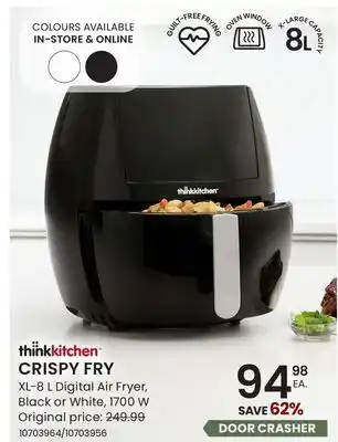 This promotion is available in various stores, view all products to get the cheapest Thinkkitchen Crispy Fry. If you'd like to find out whether this product has a bigger discount in another store, check the category 'Kitchen and Bathroom'. You may also find these offers interesting: thinkkitchen DIVERSI-FRY Toaster & Convection Oven with 10 Presets. Air Fry, Bake, Broil & More, FLAIR thinkkitchen & Crispy Minis.