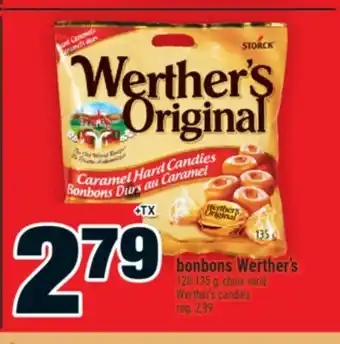 The price of Bonbons Werther's | Werther's candies can be found at the top of the page, together with the dates during which the offer is available. You can also check the price in the current Super C flyer or on the Super C website. Promotional offers assure you of buying Super C products at the lowest price.
