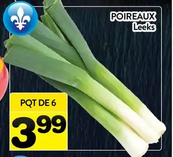 The price of POIREAUX | Leeks can be found at the top of the page, together with the dates during which the offer is available. You can also check the price in the current Supermarché PA flyer or on the Supermarché PA website. Promotional offers assure you of buying Supermarché PA products at the lowest price.