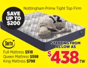 The Nottingham Prime Tight Top Firm Mattress is currently available at a discount at Surplus Furniture. On this page, you will find all the details about the current price, the promotion terms, and the validity period. You can also explore comparable deals and promotions for Nottingham Prime Tight Top Firm Mattress to make the most cost-effective choice.