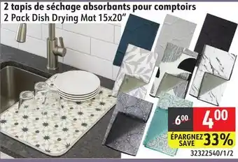 This promotion is available in various stores, view all products to get the cheapest 2 Pack Dish Drying Mat 15x20. If you'd like to find out whether this product has a bigger discount in another store, check the category 'Grocery'. You may also find these offers interesting: Selected Drying Towels, Type A Accordion Drying Rack & Tripod Clothes Drying Rack.